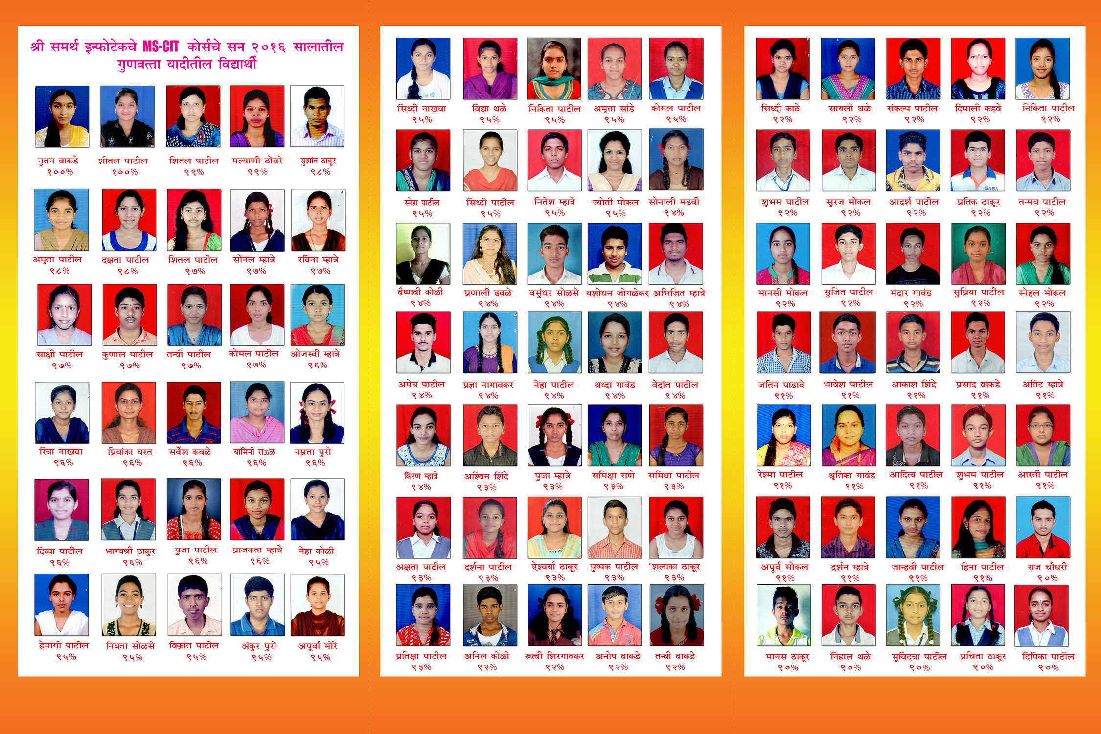 Year 2016 Topper Result